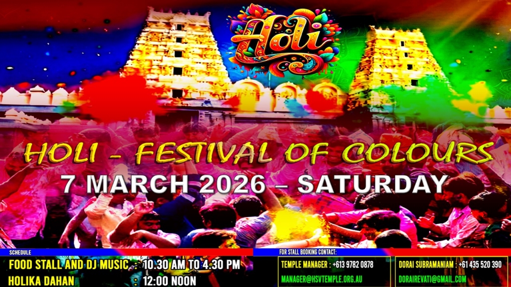 Holi – Shiva Vishnu MandirUpcoming events / February 26, 2026 Shiva Vishnu Mandir – 07-03-2026 10:30 AM to 4:30 PM