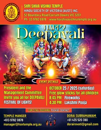 Shiva Vishnu Temple – DiwaliUpcoming events / October 18, 2025 25th October 2025 – 58 Boundary Road, Carrum Downs VIC 3201